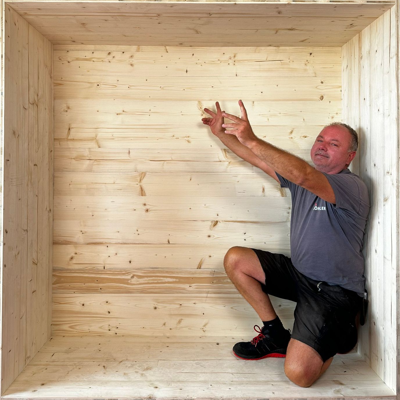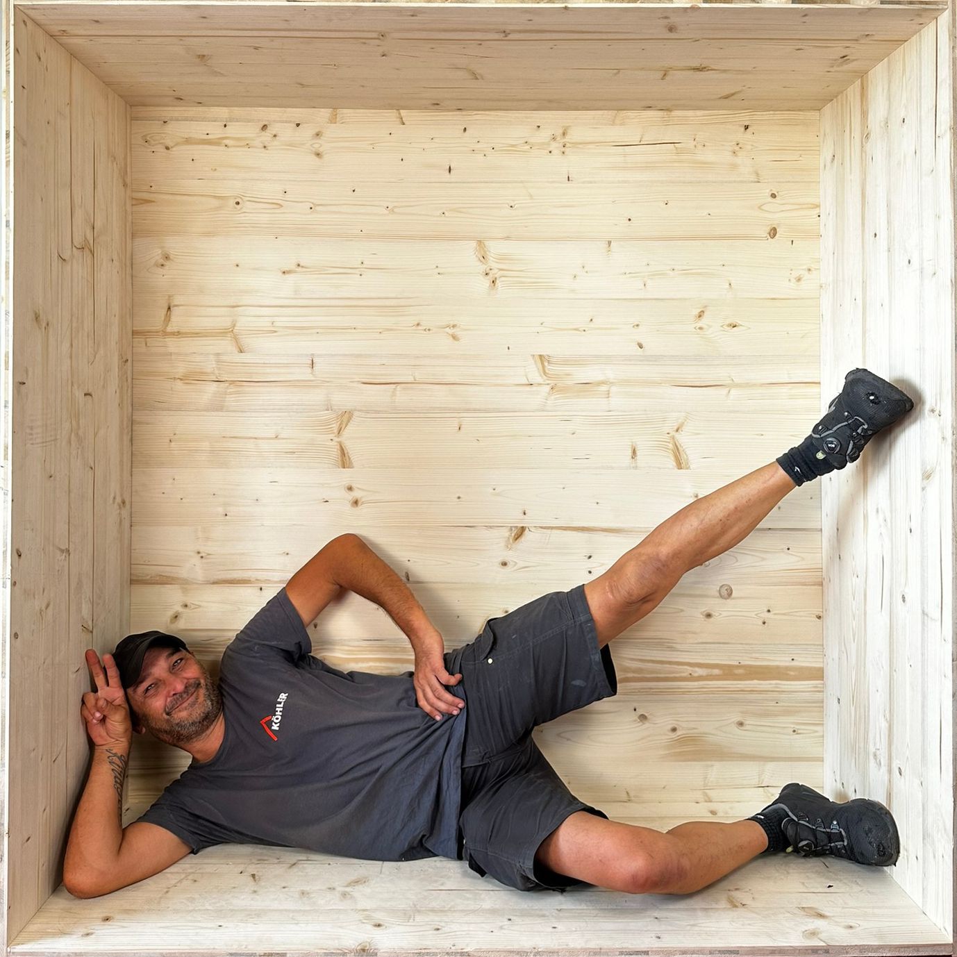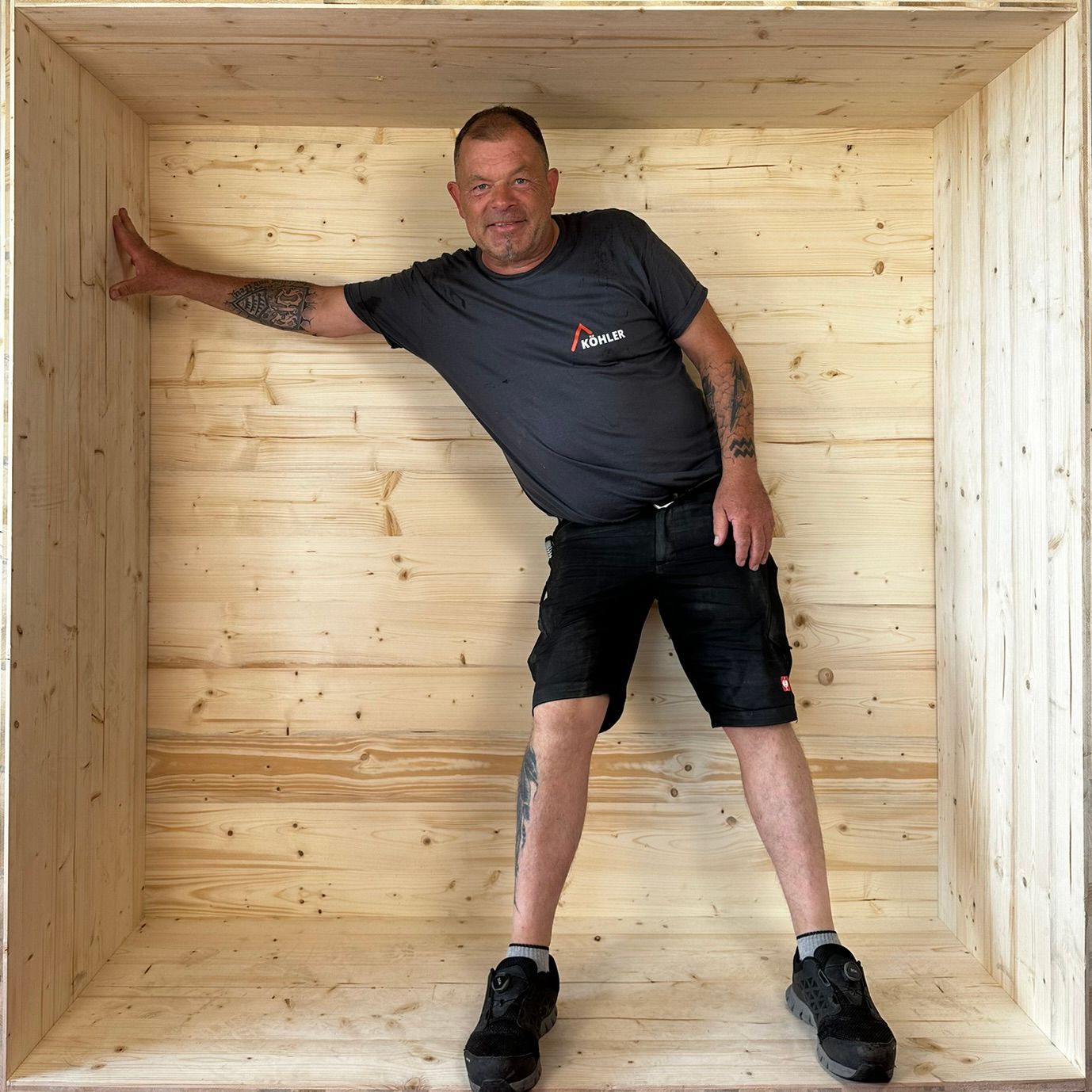Clemens ist gelernter Zimmerer und schon mehr als fünfzehn Jahren bei uns im Betrieb. Je älter ein Haus desto strahlender sein Gesicht...